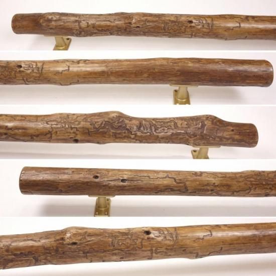 幹 または 枝の流木、まっすぐに伸び、その中にふくらみのある木の節や丸い枝跡がいくつも見られます。